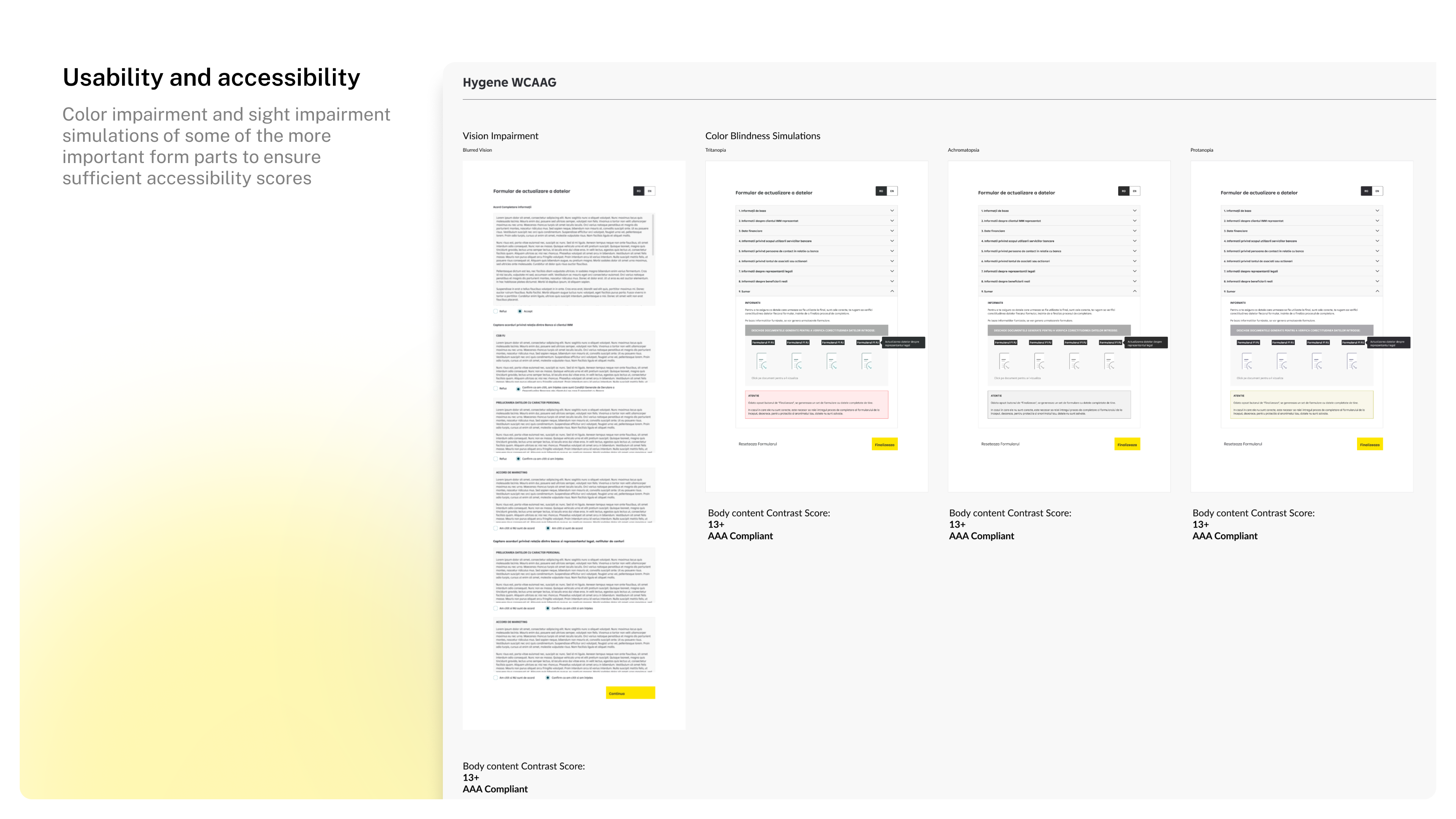 Color impairment and sight impairment simulations of some of the more important form parts to ensure sufficient accessibility scores