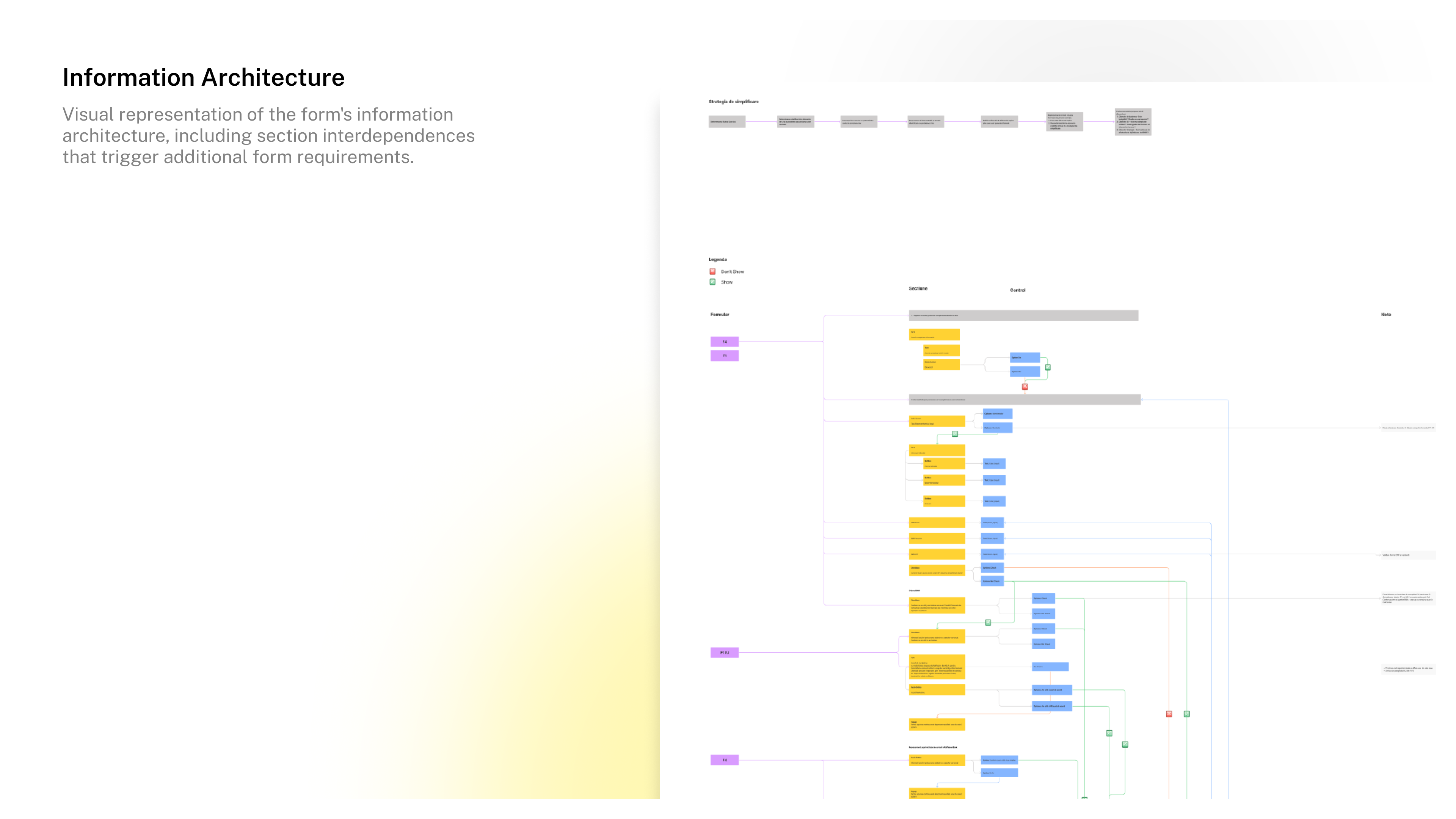 Visual representation of the form's information architecture, including section interdependences that trigger additional form requirements.